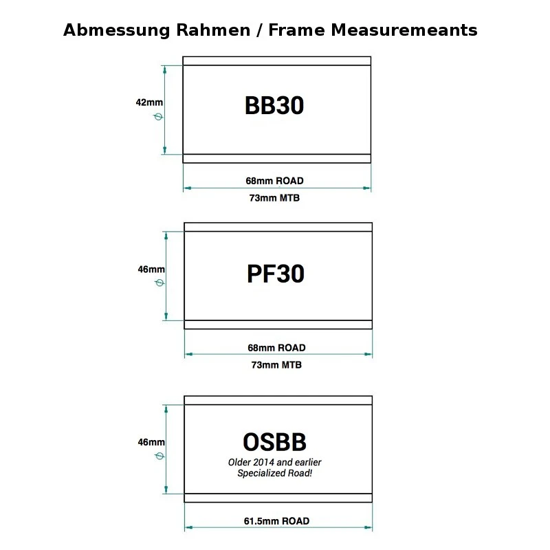 Conversion BB – Deze toonaangevende conversion bottom bracket is een volledig vervangende bottom bracket voor vele frame- en trapasstandaards. Met het gepatenteerde ontwerp blijven de afgedichte industriële lagers buiten het frame, zoals vereist door de specificatie. Dit resulteert in een grotere stijfheid en blijft vrij van tolerantieproblemen die bij sommige concurrerende systemen voorkomen. Gewoon de niet-aangedreven huls erin drukken, de huls aan de aandrijfzijde schroeft er dan op en drukt automatisch precies in het frame met behulp van het “praxis spantangsysteem”. De druk wordt gelijkmatig verdeeld over het trapashuis – voor een “scheurvrije”, absoluut strakke pasvorm.